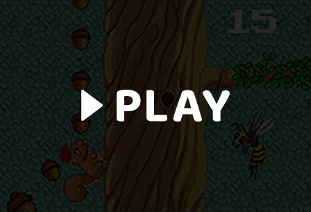 Together with this funny squirrel, climb the tree as high as you can and, along the way, collect all the nuts to replenish the winter supply. Be careful not to bump into the branches during this climb; they hold all kind of animals wanting to take your nuts. In addition, every few meters, you will have to solve multiplications; if you get the answer wrong, you will lose your nuts and will have to start all over again. The nuts are worth 1 point, and a correct answer is worth 10 points.