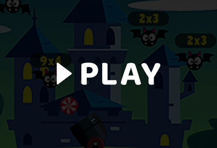 In this game you practice multiplication tables and defend the castle from a bunch of scary bats. Every enemy has a multiplication equation that you need to solve. When you get the answer right, the cannon will shoot the bat into the air and your castle will be safe for a while. But be careful, if three bats fly over the white line, you lose. You can play by clicking/tapping on the right numbers or entering the numbers on your keyboard.