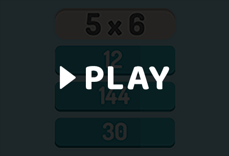 This multiplication table game is all about speed. Once you have reviewed the equation above, press the correct answer as soon as possible, as the timer runs extremely fast. If you run out of time, it's game over for you, and you have to start all over again. The game rewards you with one point every time you choose the correct answer out of the three possible answers. Also, the game tracks your high score, so try to beat it every time!